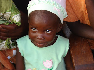 While we were there, the director, Christopher, had all the kids come in and sing to us. After they sang, we were enjoying luke warm Coke and cake, when this "baby" came crawling out. She literally appeared out of nowhere.